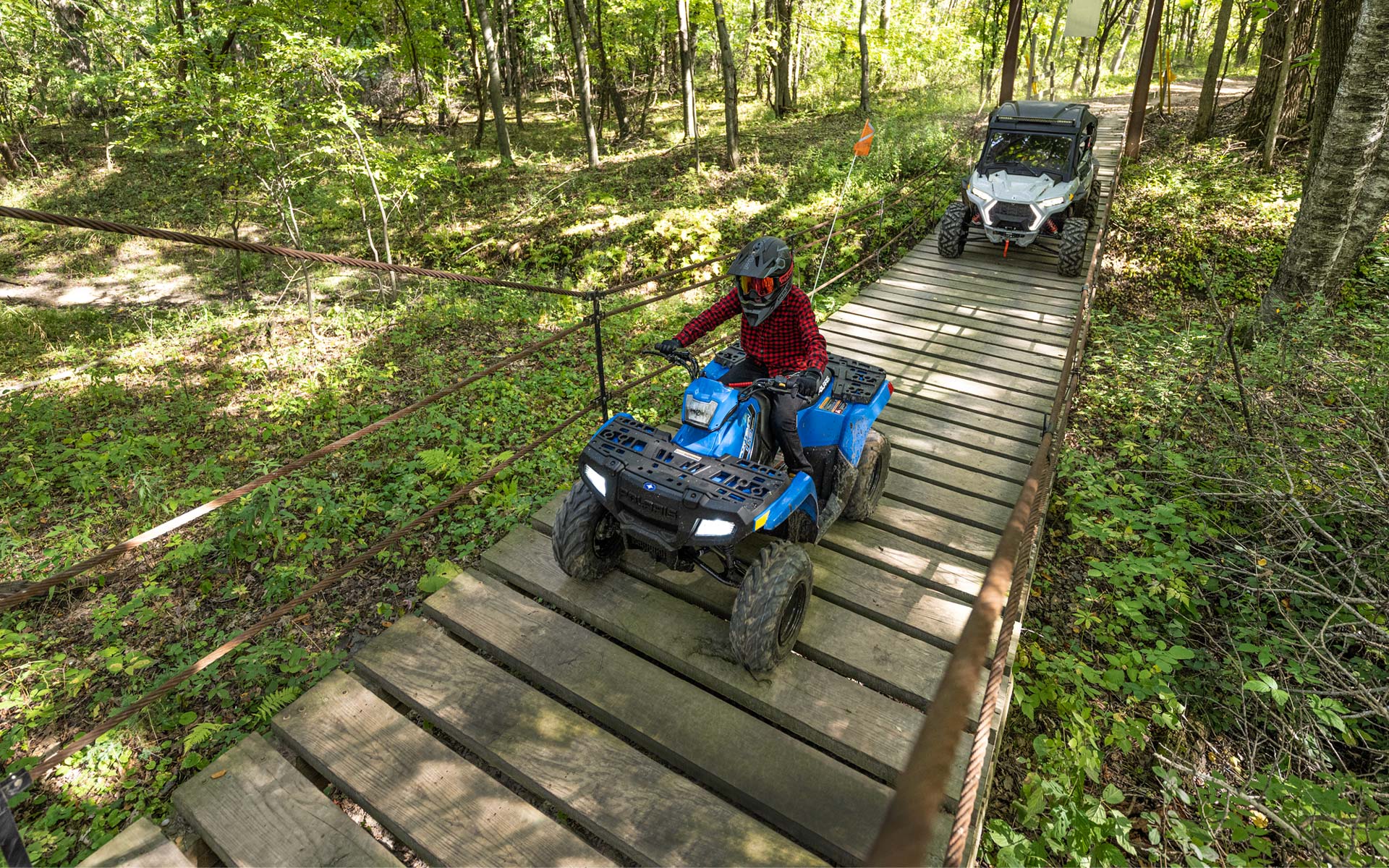 Faites découvrir à votre enfant les joies du tout-terrain en toute confiance grâce à une conduite confortable et une très grande maniabilité. Equipé d’un moteur 110 EFI, d’une suspension arrière à long débattement, d’une garde au sol de 7.6 cm et d’un porte-bagages avant et arrière, le Sportsman 110 comblera toutes vos attentes.